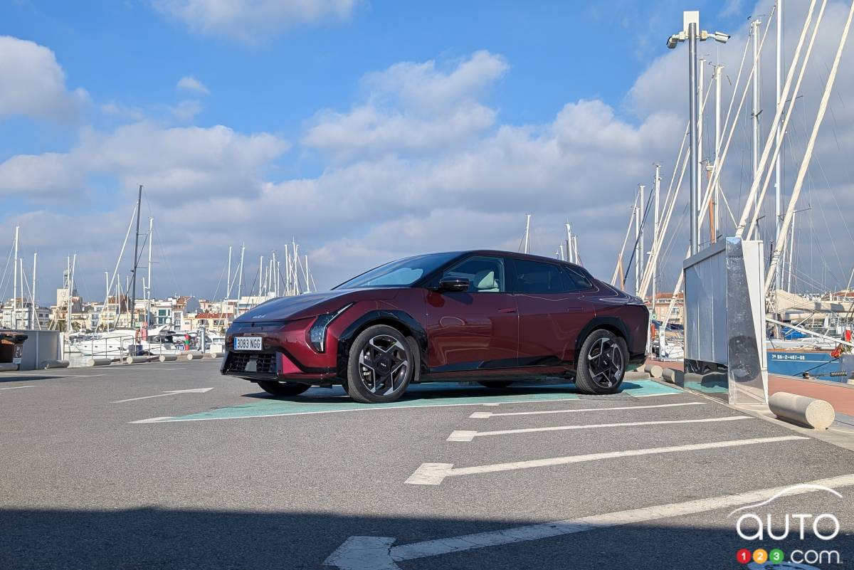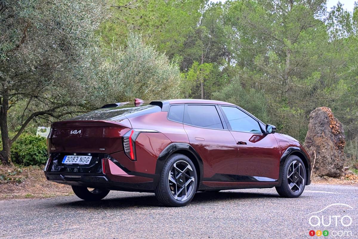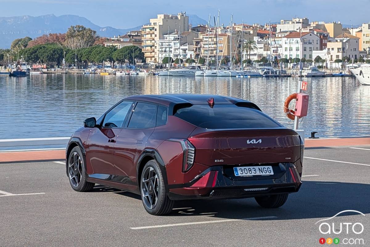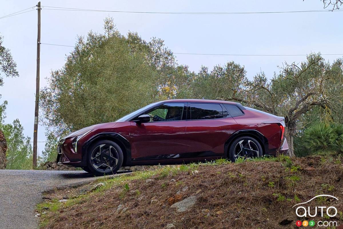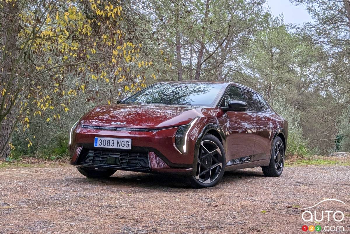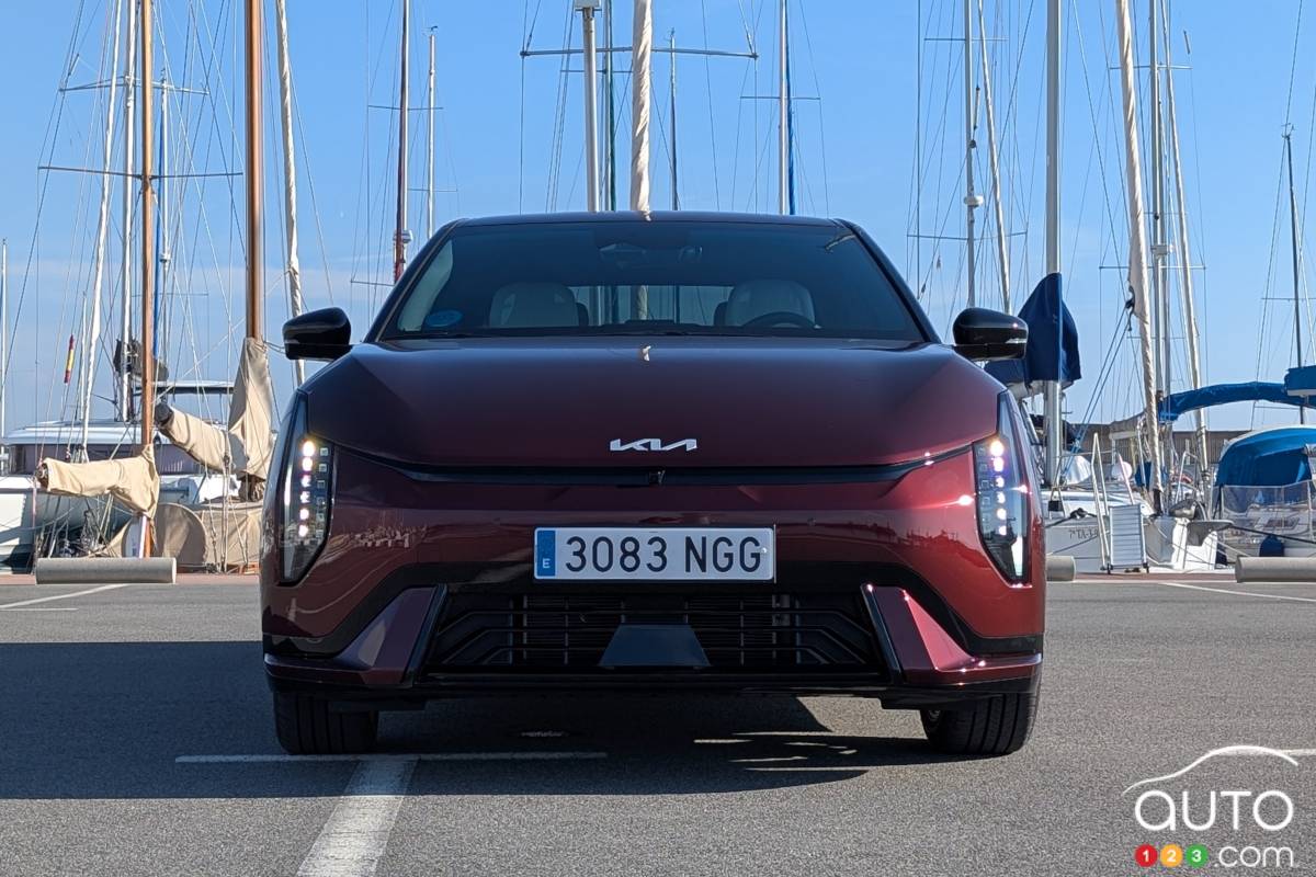 Mais revenons à l'EV4. Nous avons échappé au début de l'hiver canadien pour un premier essai en Espagne de la berline entièrement électrique, d'une taille similaire à celle de la berline à essence K4 de la compagnie. Elle devrait arriver sur le marché ici au début de 2026 en configuration à traction, la variante à quatre roues motrices devant suivre plus tard en 2026 (pour l'année modèle 2027, en fait).