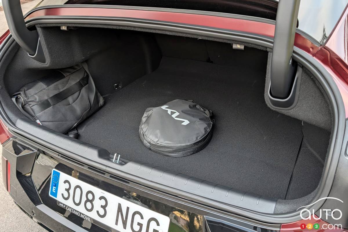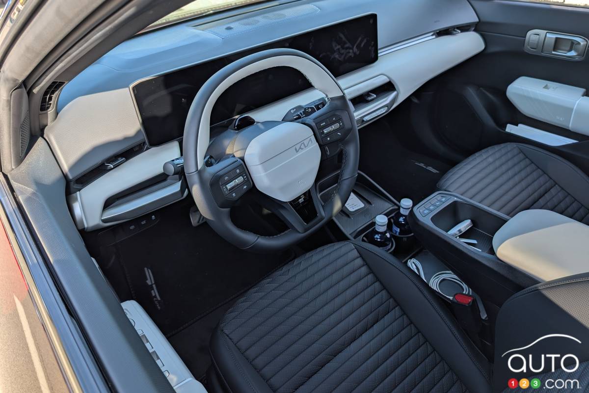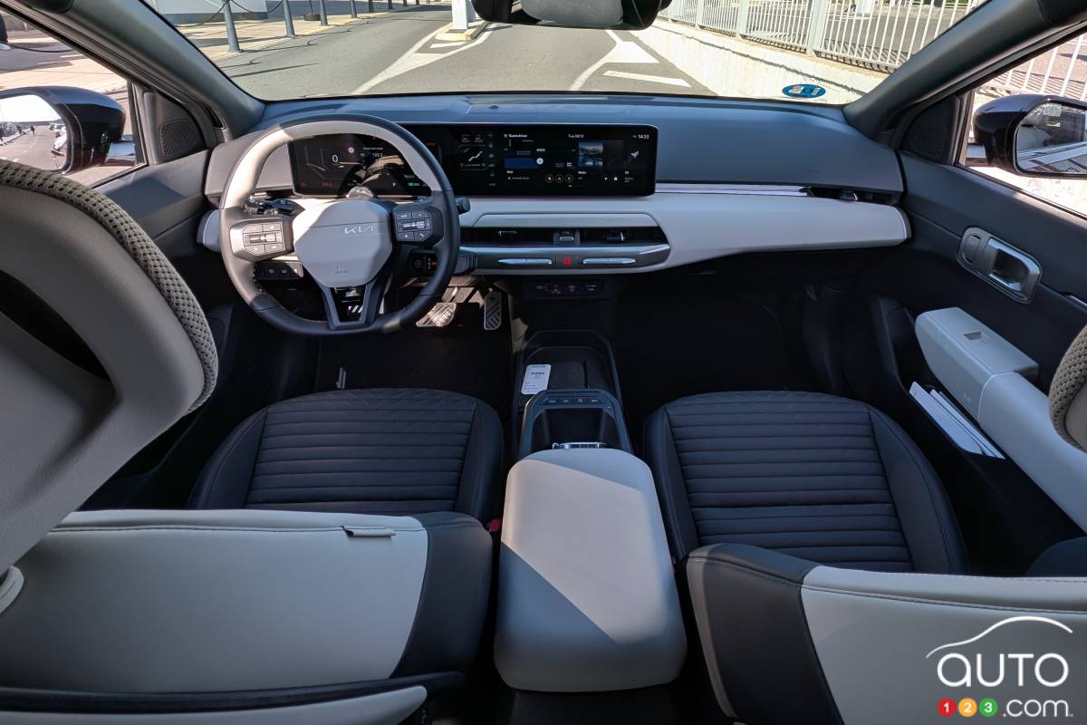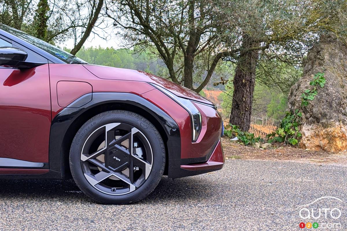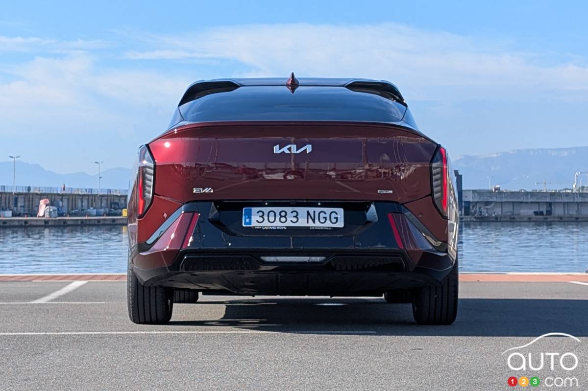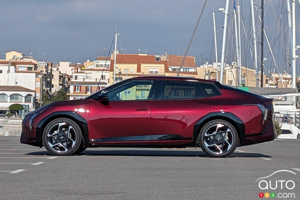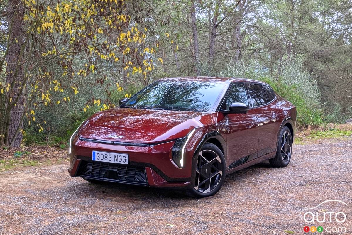 Mais revenons à l'EV4. Nous avons échappé au début de l'hiver canadien pour un premier essai en Espagne de la berline entièrement électrique, d'une taille similaire à celle de la berline à essence K4 de la compagnie. Elle devrait arriver sur le marché ici au début de 2026 en configuration à traction, la variante à quatre roues motrices devant suivre plus tard en 2026 (pour l'année modèle 2027, en fait).